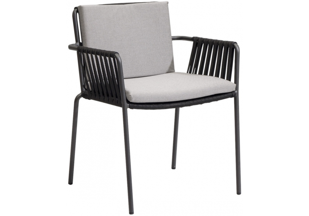 Net designed by Kettal Studio is a dining chair with a painted aluminum frame with armrests, backrest and seat enriched with fabric cords. Net is available in different versions, finishes and with or without cushions.