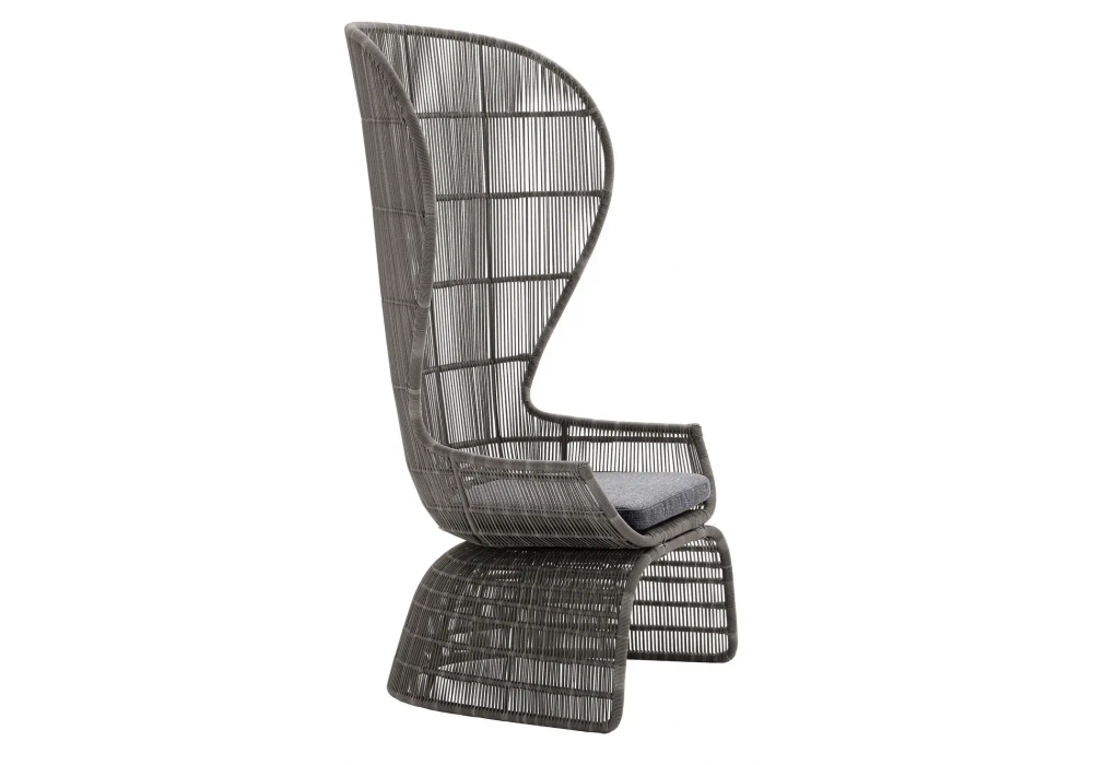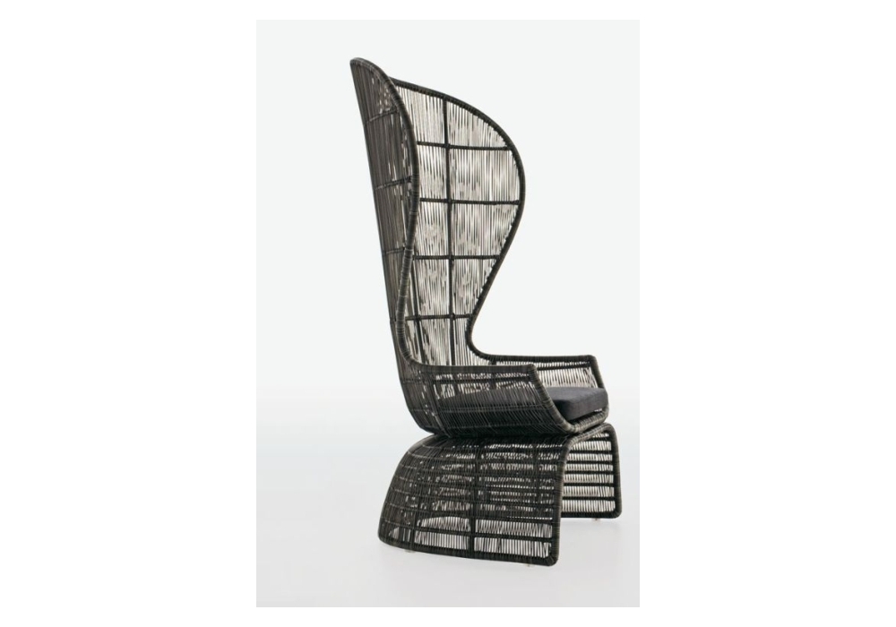 Crinoline C5P designed by Patricia Urquiola for B&B Italia Outdoor is an armchair with structure in polyester powder painted aluminium tortora. Interlacing in tortora polyethylene. Ferrules in thermoplastic material. Seat cushion with covering in fabric.
