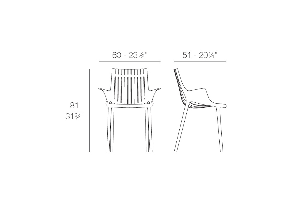 Ibiza designed by Eugeni Quitllet for Vondom is a stackable small armchair made of fiberglass-reinforced polypropylene, produced by gas injection. Available in various colors. Suitable for indoor and outdoor use.