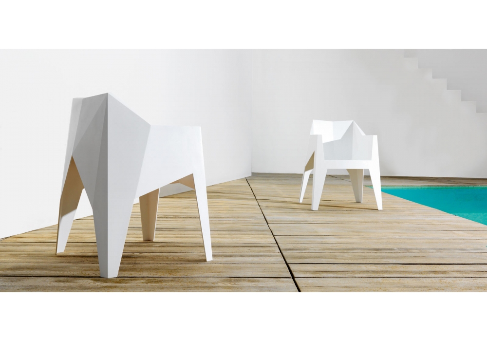Voxel designed by Karim Rashid for Vondom is a stackable armchair made of polypropylene injected with fiberglass. Available in various colors. Suitable for indoor and outdoor use.