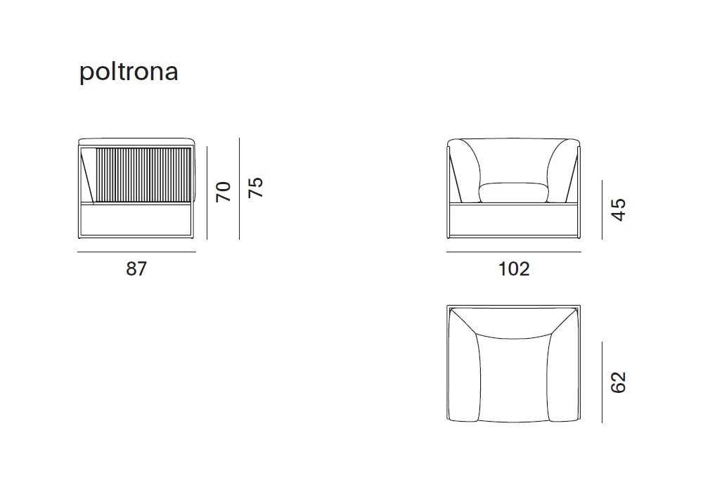 Arpa designed by Ramón Esteve Estudio for MDF Italia is an outdoor armchair with supporting structure made of stainless steel, epoxy powder coated with specific treatment for outdoor use. Fully removable cover in 100% polyester Tecnostrong.