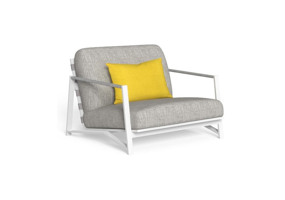 Cottage Luxury designed by Ramón Esteve for Talenti is an armchair with structure in white powder coated aluminum or graphite. Cushions in removable fabric, easy to wash and resistant to atmospheric agents.