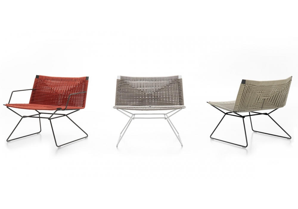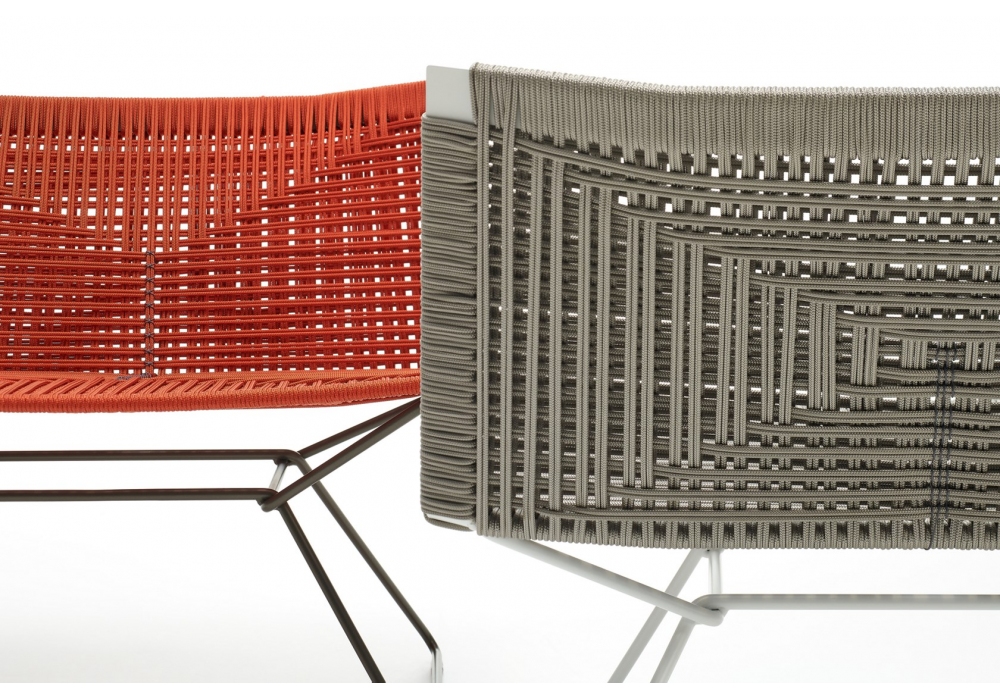 Neil Twist Armchair designed by Jean Marie Massaud for MDF Italia is an outdoor armchair with supporting structure made of steel, woven with rope in polyester, available in 5 different finishes.