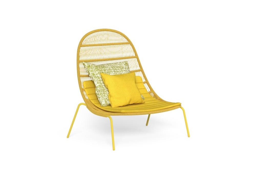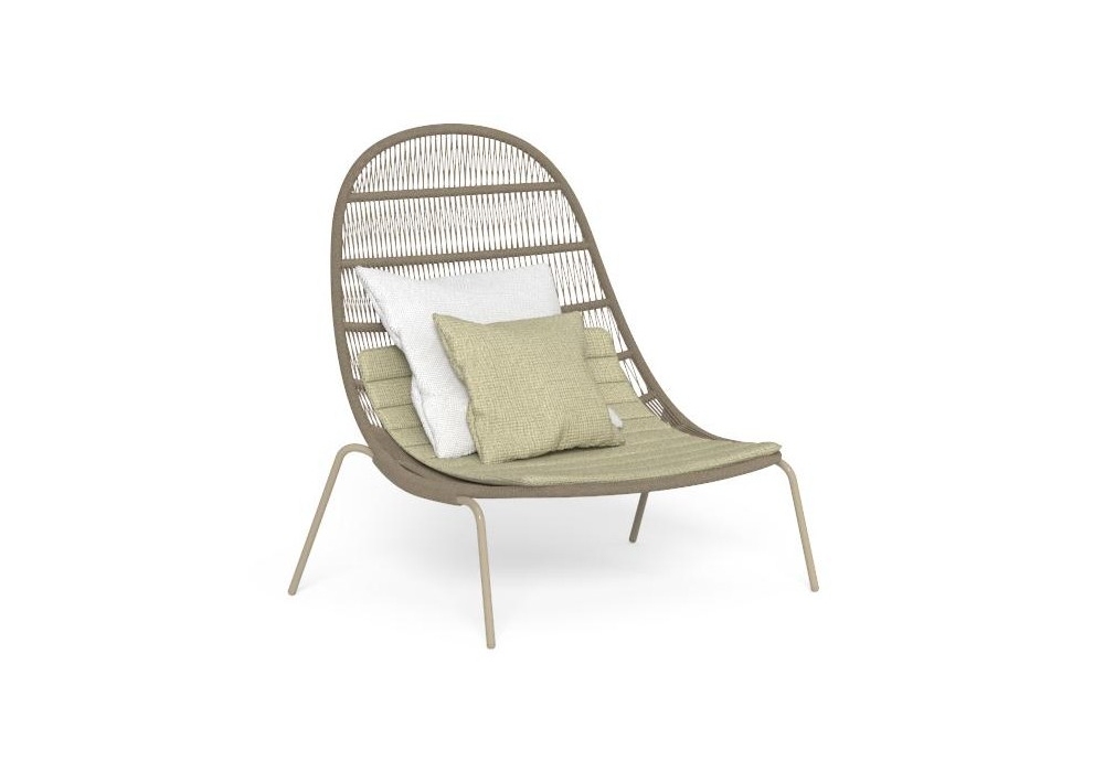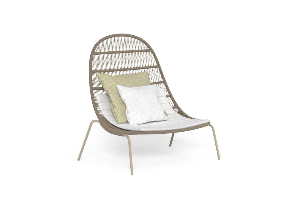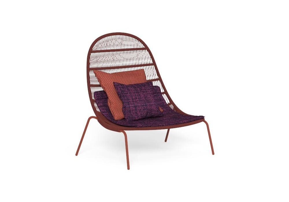 Panama Lounge designed by Ludovica and Roberto Palomba for Talenti is an armchair with aluminum structure and synthetic nautical rope available in various colors, seat cushion and optional decorations in various finishes.