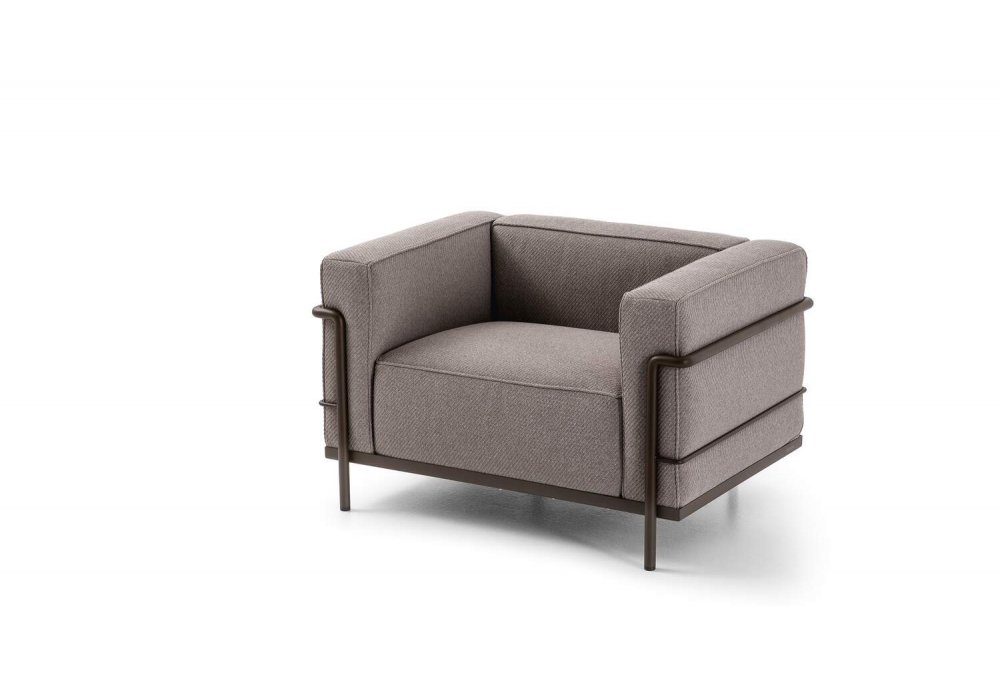 3 Fauteuil Grand Confort, Grand Modèle, Outdoor designed by Le Corbusier, Pierre Jeanneret, Charlotte Perriand for Cassina is an outdoor armchair with painted frame, seat and backrest in fabric available in different finishes.