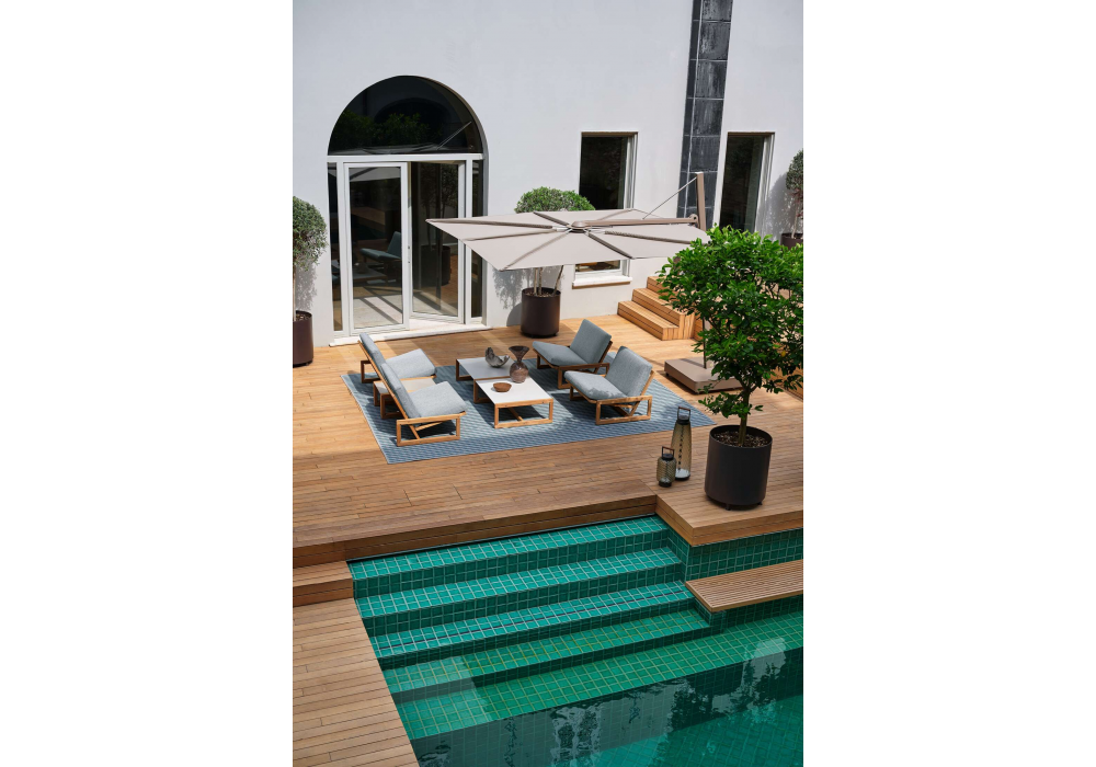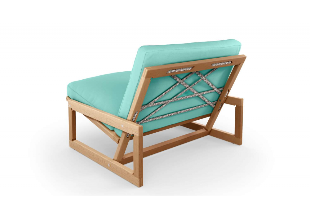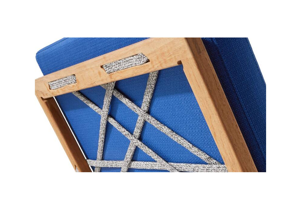 Carlotta designed by Afra & Tobia Scarpa for Cassina is an outdoor armchair made with natural teak structure, back and seat in Mamba rope with fabric cushion. Available in different finishes.