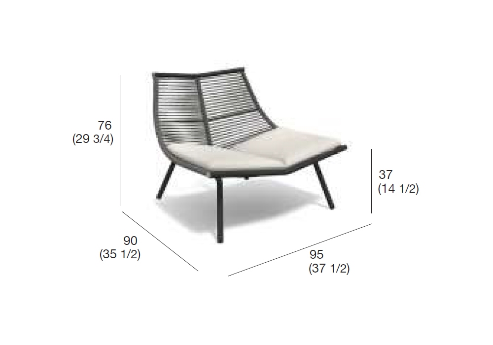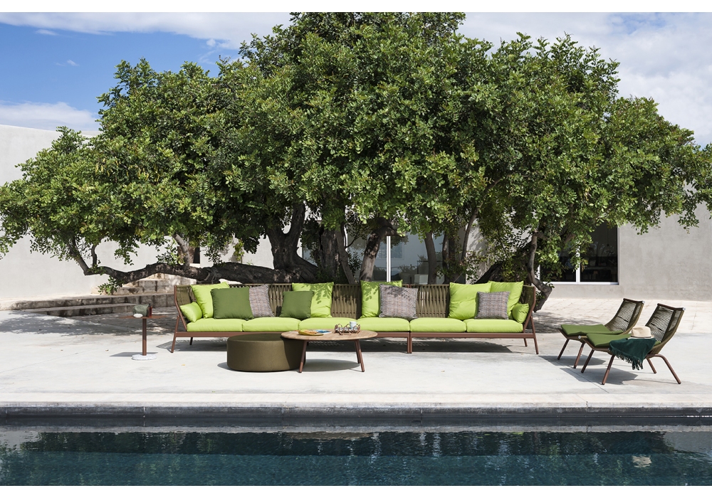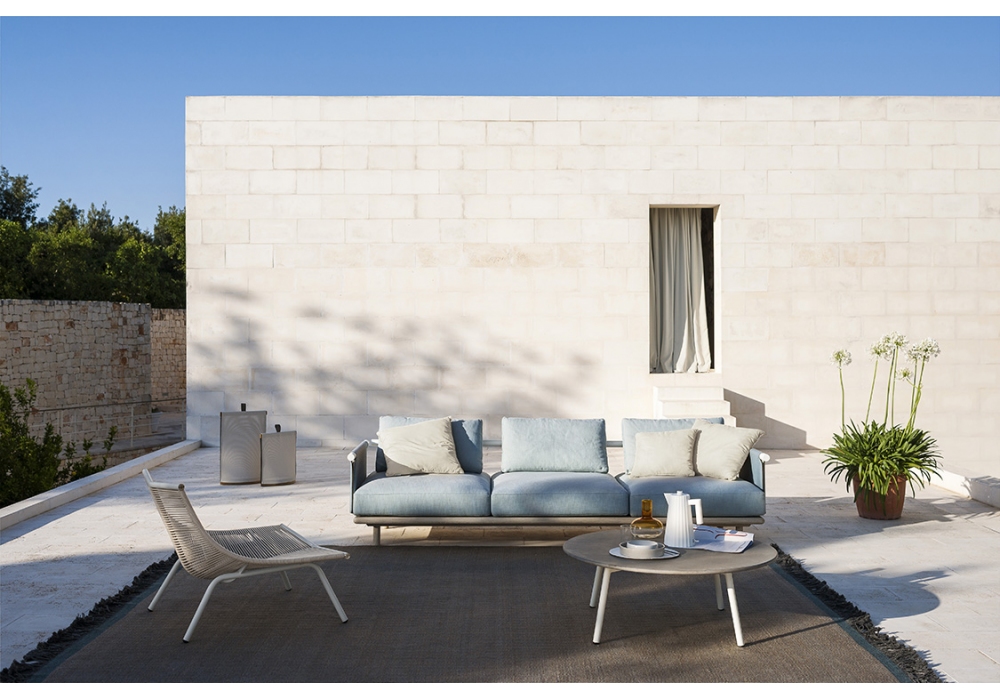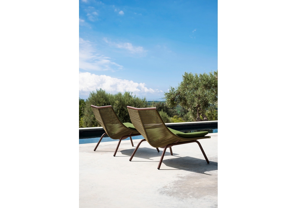 Laze designed by Gordon Guillaumier for Roda is an outdoor lounge chair with powder coated stainless steel structure and body composed of polyester or acrylic cords.