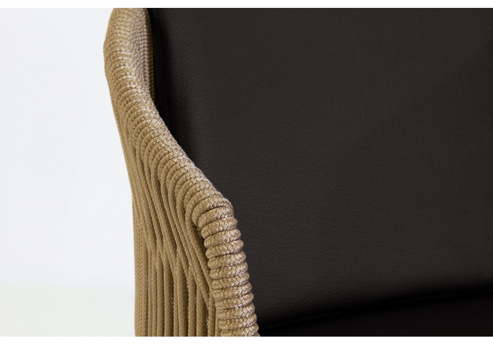 Velis PAR designed by Mario Ferrarini for Potocco is an armchair with structure in solid ash wood available in different finishes. The backrest is in painted metal and woven with gaseous or hemp rope. The seat is padded with fire-retardant polyurethane foam and is upholstered in various types of fabric, leather or eco-leather.