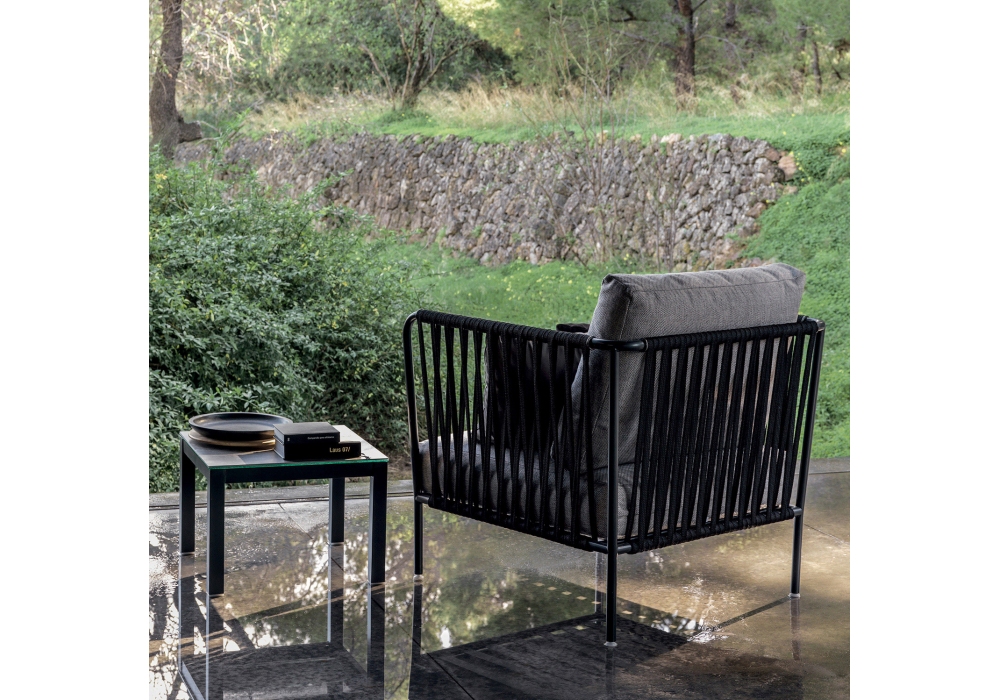 Nido designed by Javier Pastor for Expormim is an outdoor low armchair with stainless steel tube structure and seat and backrest hand-woven using rope made of high resistance polyester. Available in different finishes.