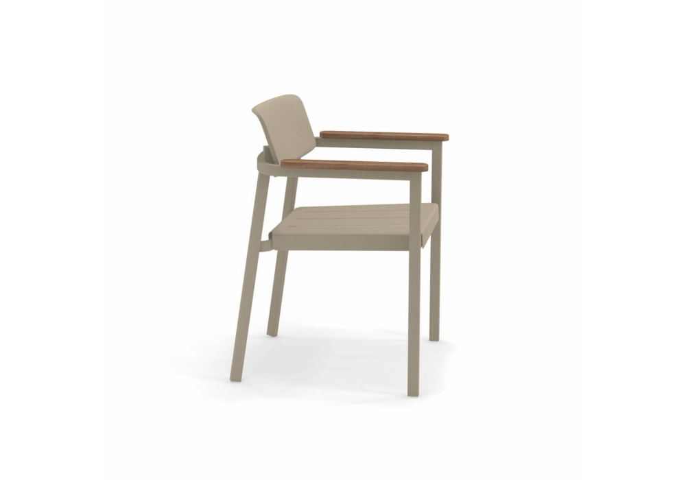 Shine designed by Arik Levy for Emu is a small armchair made of painted aluminum, and teak armrest. Also available with teak seat and backrest