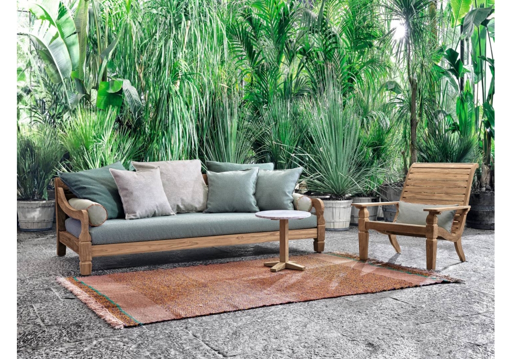 Jeko 26 designed by Paola Navone for Gervasoni is an armchair made with structure in ECOTeak and lumbar cushion upholstered in fabric, removable.