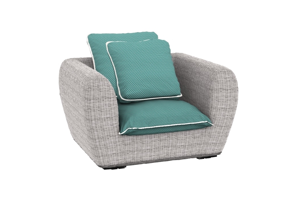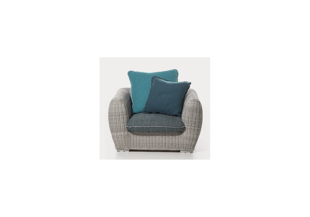 Panda designed by Paola Navone for Gervasoni is an armchair made with hand-woven aluminum structure in white / melange gray Panda Resin and aluminum feet. Cushions with removable cover.