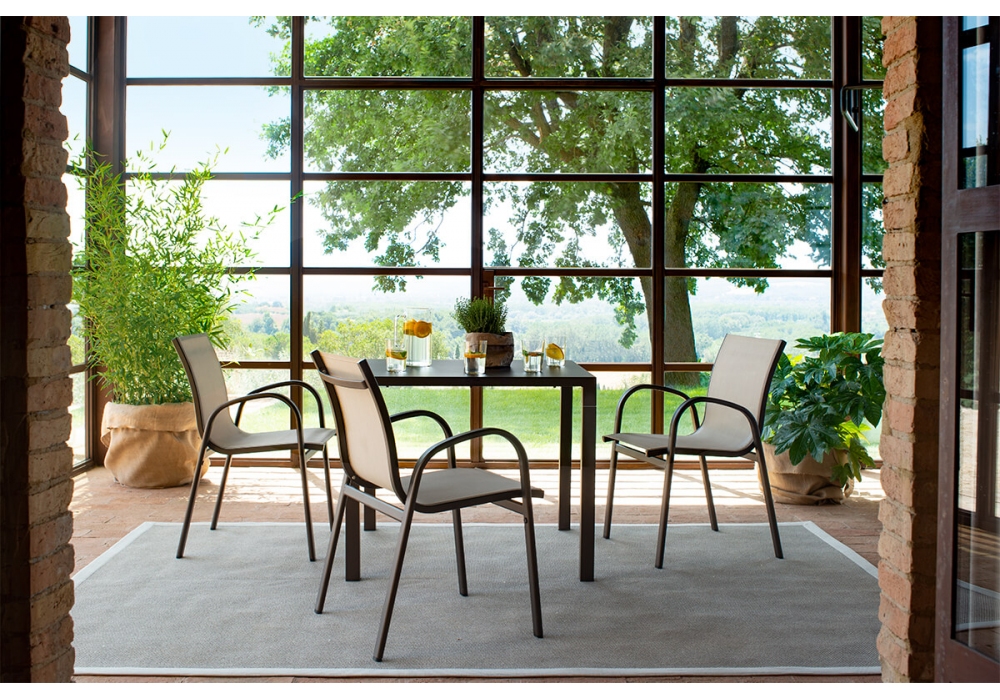 Holly designed by EMU is a steel armchair, the aluminum structure gives the product very high resistance to atmospheric agents, humidity and salt. Available in different finishes.