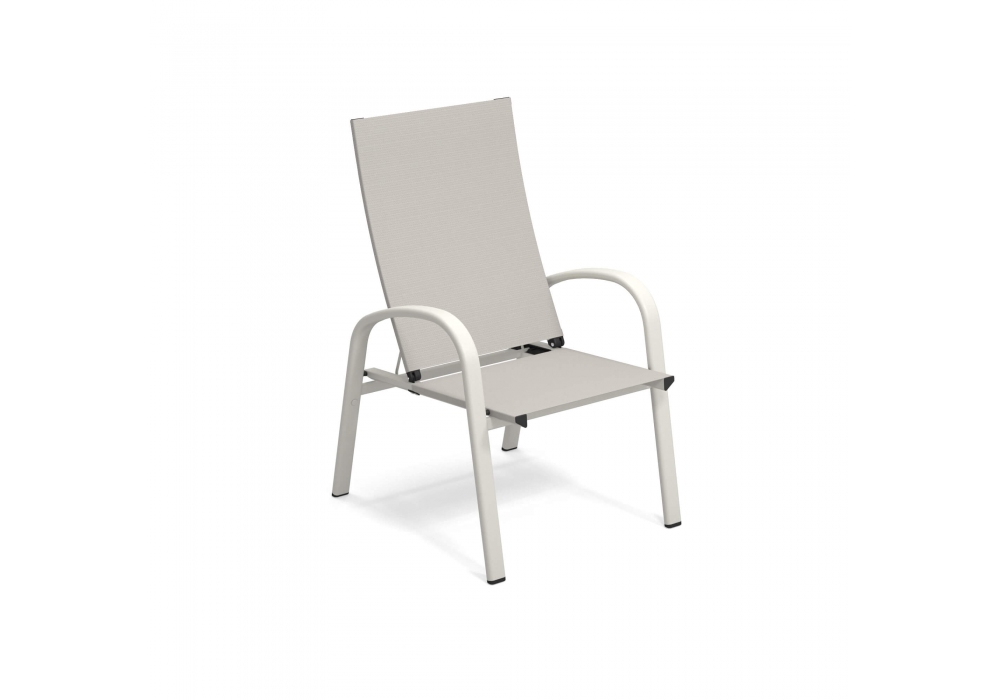 Holly designed by EMU is a reclining armchair in steel, the aluminum structure gives the product very high resistance to atmospheric agents, humidity and salt. Available in different finishes.