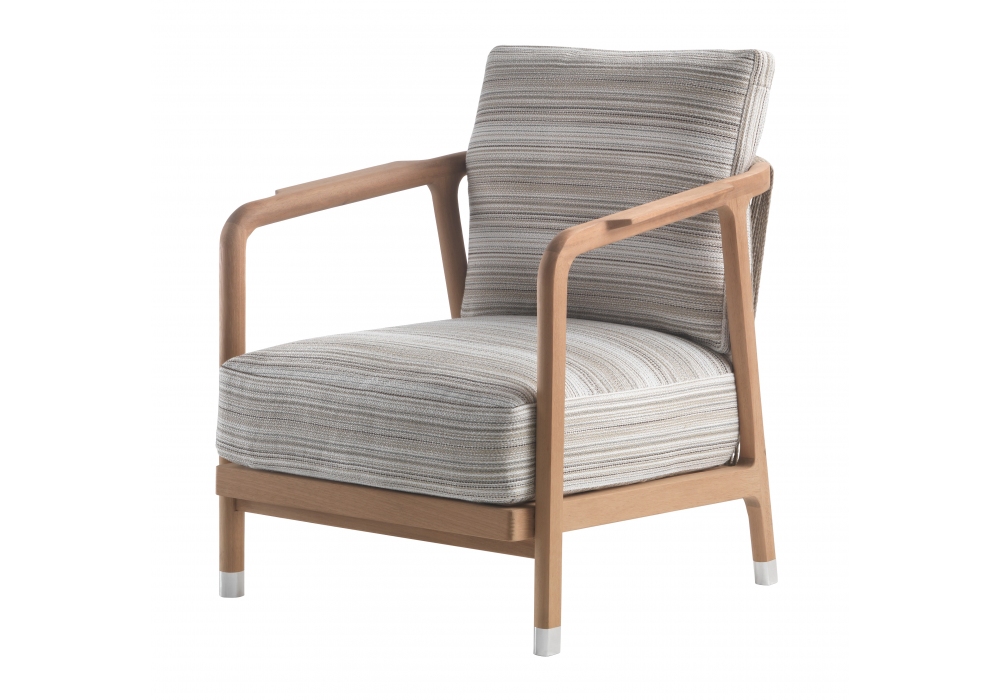 Crono Outdoor designed by Antonio Citterio for Flexform is an outdoor armchair with structure in solid Iroko wood, shell with hand-woven pvc or polypropylene rope and cushion cover in outdoor fabric.