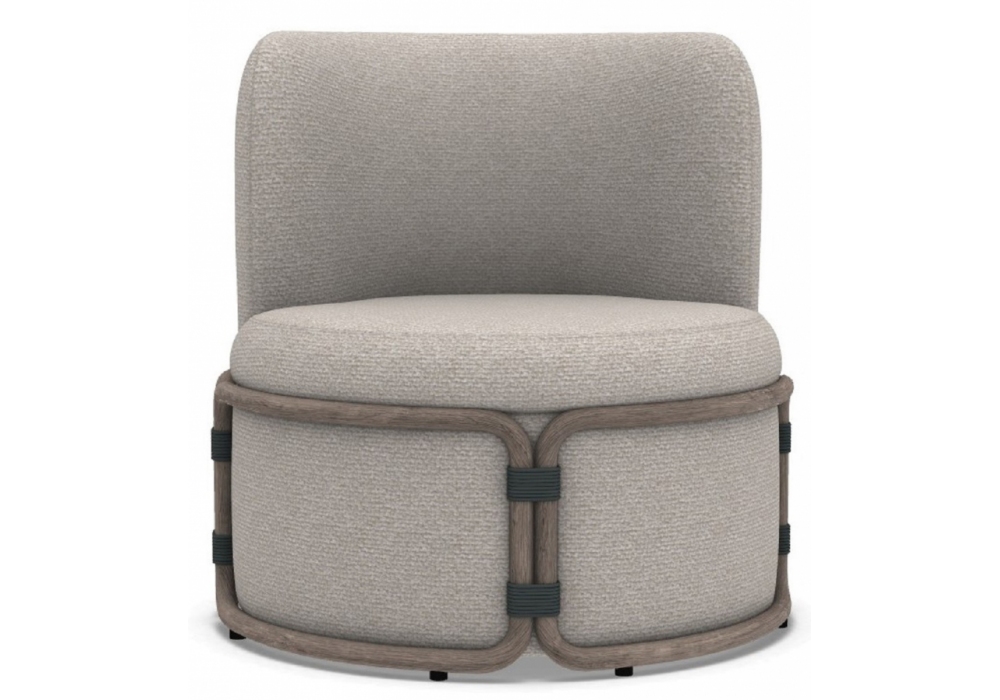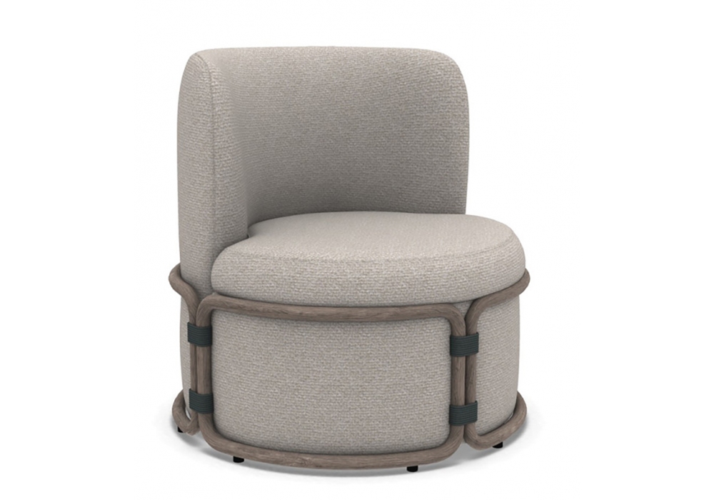 Rotin designed by Zanellato/Bortotto for Ethimo is a circular armchair with pickled teak structure and fabric upholstery, available in different finishes.