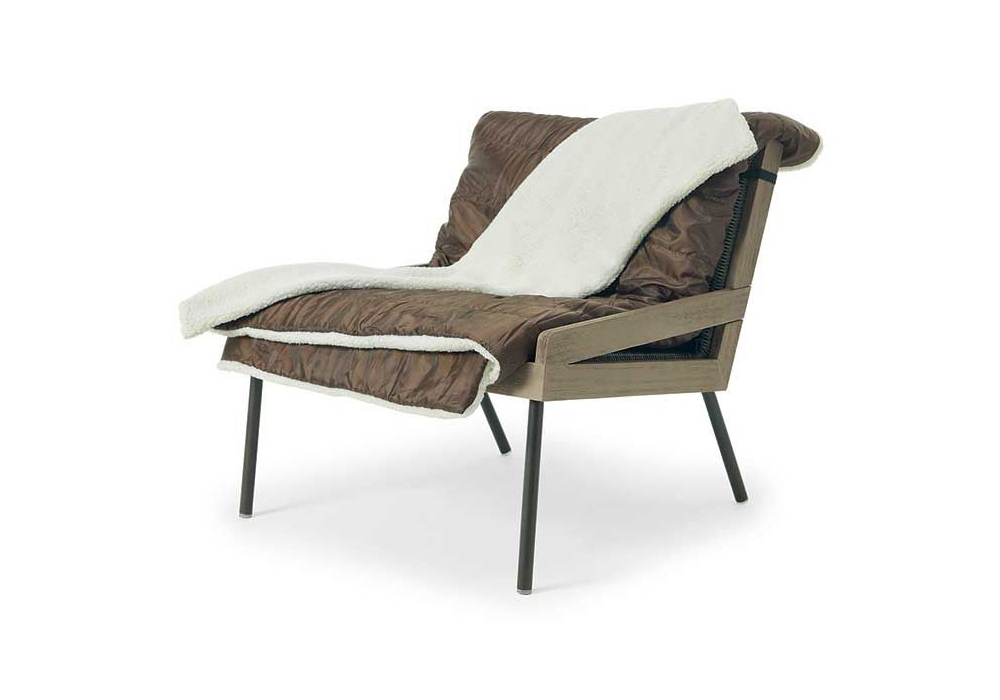 Allaperto Mountain designed by Matteo Thun, Antonio Rodriguez for Ethimo is a structured armchair in pickled teak wood and metal with etwick fiber covering. The cushions are in water-repellent acrylic fabric in an espresso finish.