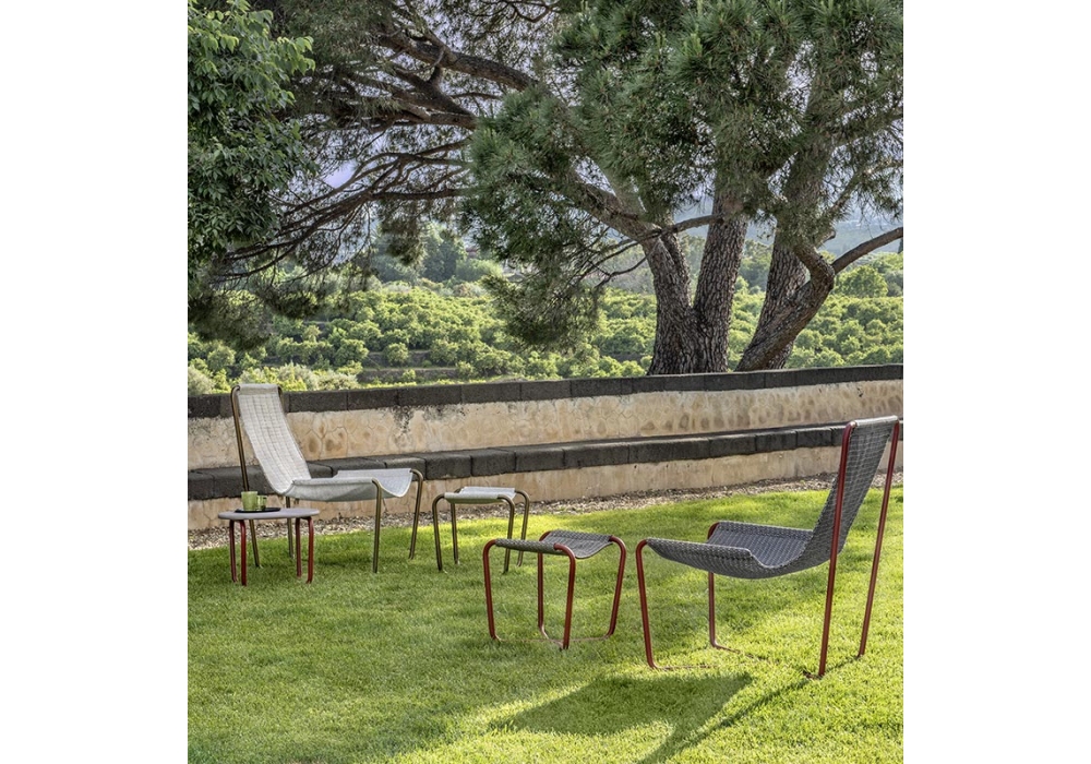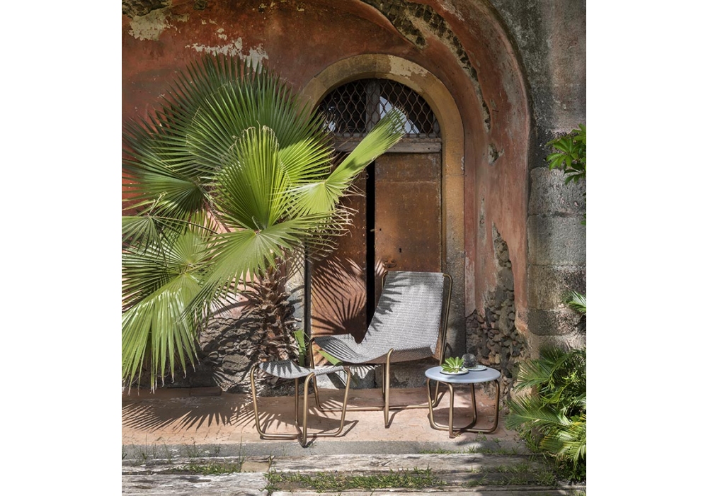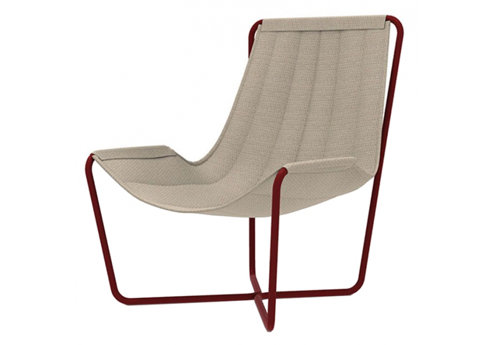 Sling designed by Studio Pepe for Ethimo is an armchair with tubular structure in painted stainless steel and upholstered in elitis polyolefin or acrylic fabric. Sling is available in different metal and fabric finishes.