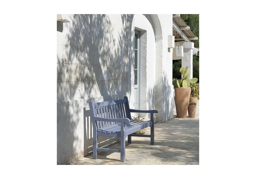 Notting Hill produced and signed by Ethimo is a bench with supporting structure in natural, pickled or painted teak wood. The seat cushions are covered in acrylic material available in different finishes.