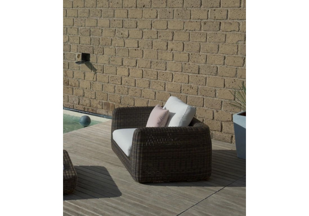 Agorà produced and signed by Unopiù is an armchair with aluminum structure and shell in hand-woven waprolace synthetic fiber. The cushions are covered in acrylic fabric in different colors. Agorà is available in different finishes.