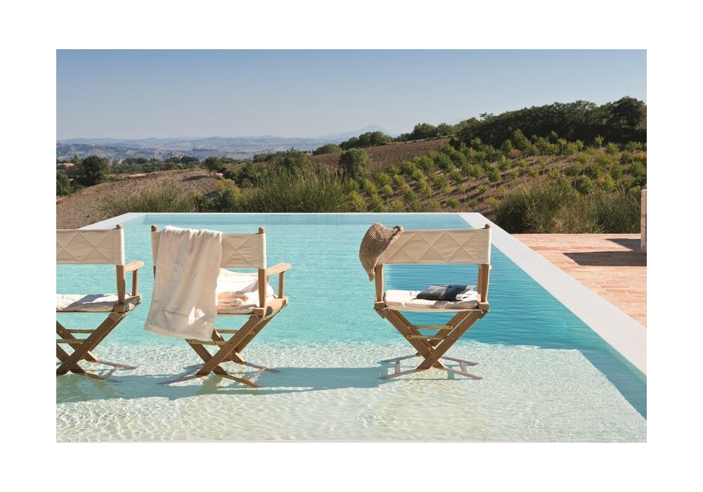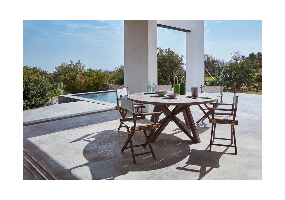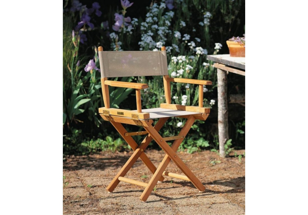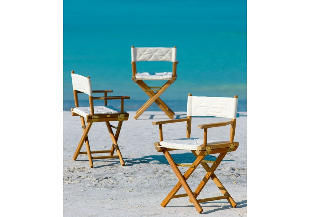 Chelsea produced and designed by Unopiù is a folding armchair with natural teak structure covered in beige canatex or white texitilene. The seat cushions are in cotton in different finishes.
