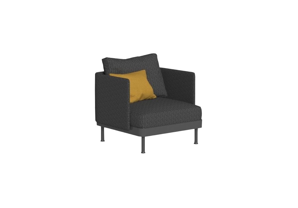 Slam designed by Ludovica + Roberto Palomba for Talenti is an outdoor armchair with structure in powder-coated aluminum. Backrest and cushions have removable covers and are upholstered in weather resistant outdoor fabrics.