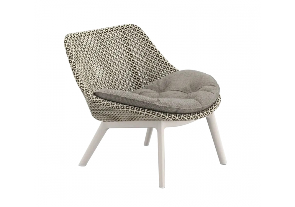 The Mbrace collection designed by Sebastian Herkner for Dedon comes in a mix of materials. The structure consist of DEDON Fiber woven over an aluminum frame, while the base is made of a powder coated, die cast, single-piece aluminum.