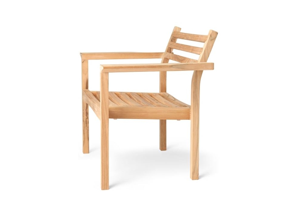 AH601 designed by Alfred Homann for Carl Hansen & Søn is an outdoor armchair with armrests with solid teak wood frame. Available with or without seat or back cushions, covered in Agora Life Oat 1760 fabric.