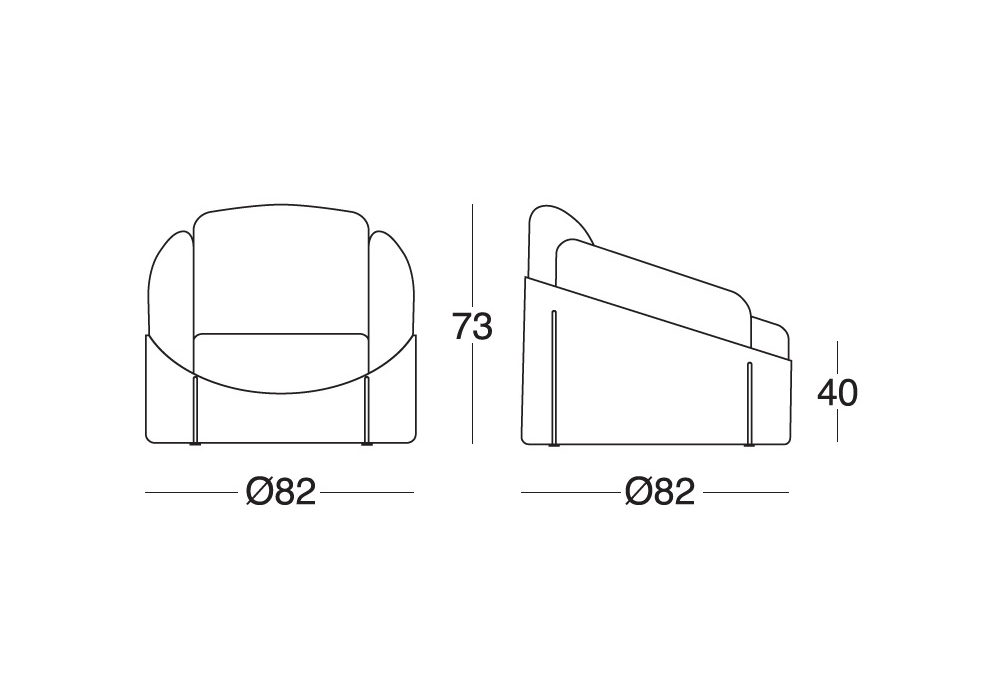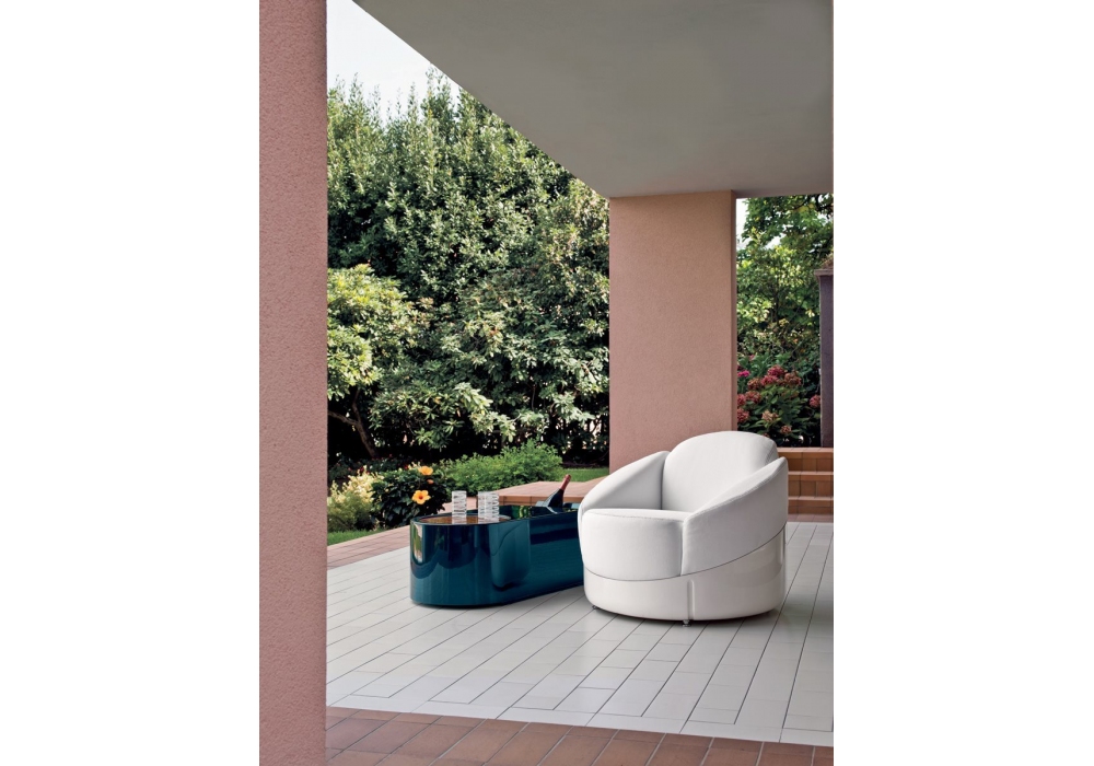 Astrea designed by Joe Colombo for Longhi is an outdoor armchair with manually stratified fiberglass structure. The external structure is finished in black or white Gealcoat or in different metallic finishes. Independent cushions in multi-density polyurethane foam and Dacron, with completely removable covers. Upholstery in fabric or leather.