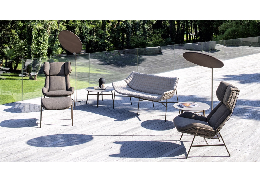 Summer Set designed by Cristophe Pillet for Varaschin is a bergere with structure in powder coated steel. Cushions with Dryfeel rubber padding for outdoor use. Available in different finishes.