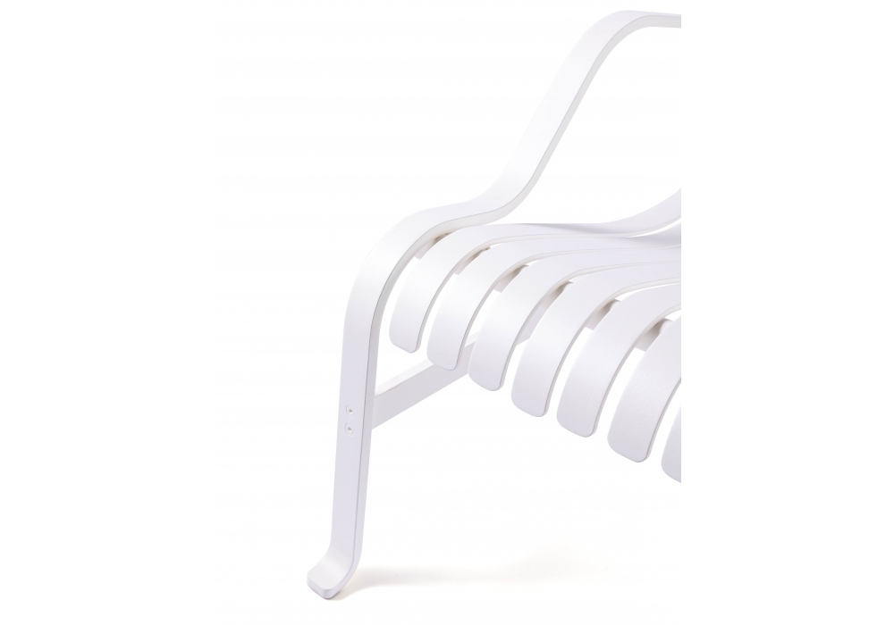 Vendicari Lido designed by Jangir Maddadi for Cappellini is an outdoor armchair with armrests made with flat aluminum profiles and support rods. Embossed powder coating. Seat cushion in polyester wadding with water-repellent lining, on request.