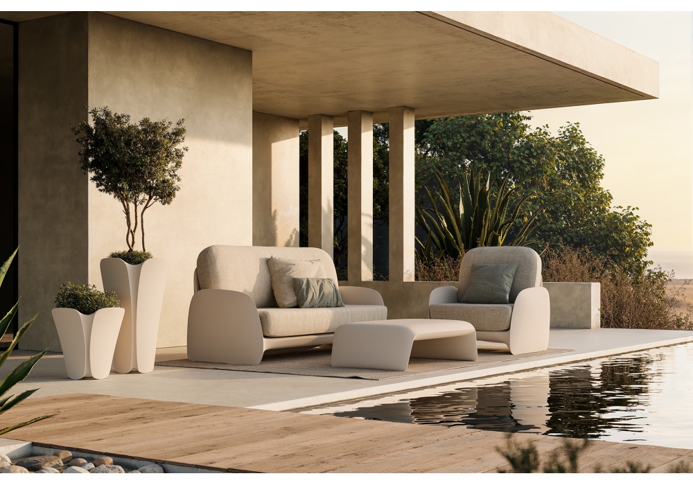 Pezzettina designed by Archirivolto for Vondom is an armchair made of polyethylene resin by rotational molding and fabric upholstery. 100% recyclable. Item suitable for indoor and outdoor use. Available in different finishes.