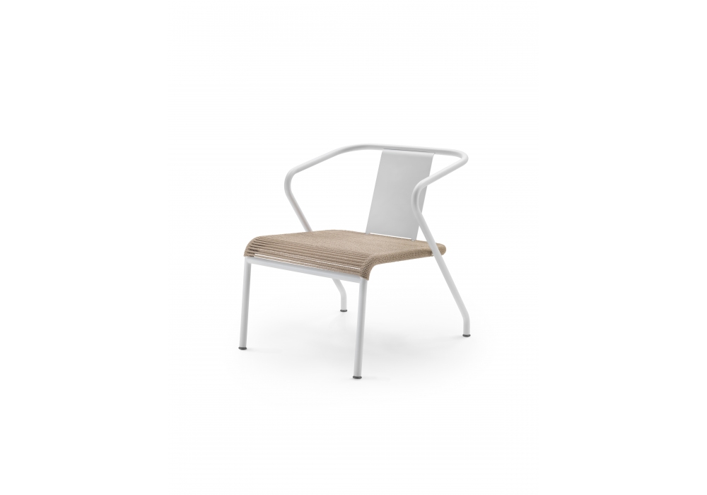 Calipso designed by Antonio Citterio for Flexform is an outdoor armchair in solid iroko wood, with polypropylene cord weave. Available in different finishes.