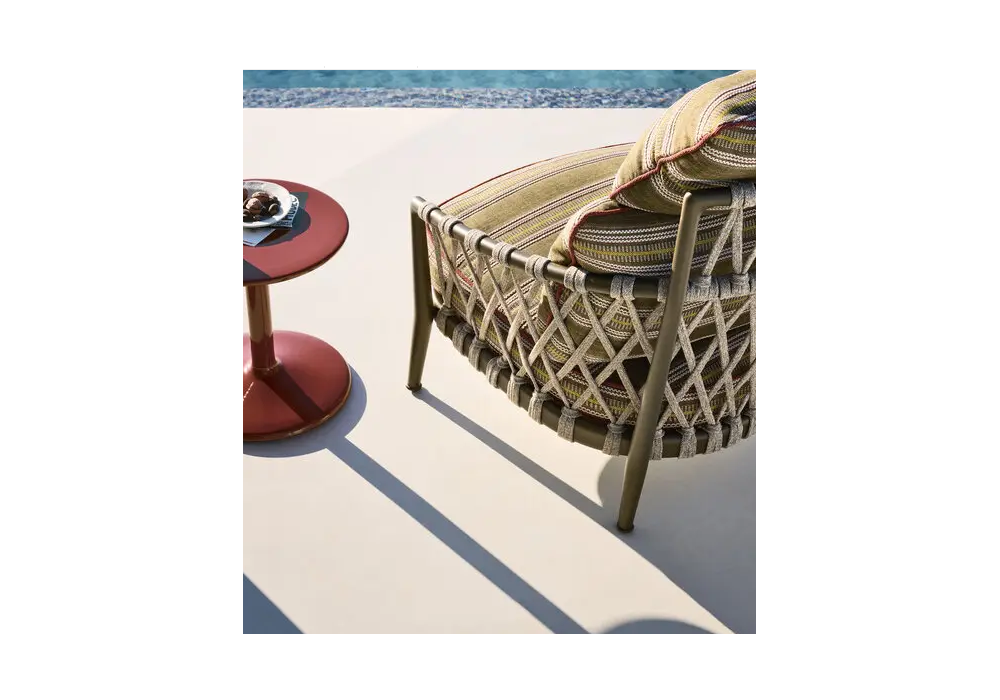 Erica designed by Antonio Citterio for B&B Italia Outdoor is a high-back armchair covered in fabric. The structure is in painted aluminum and woven in polypropylene fiber. The seat and backrest / headrest cushions can be made in different fabric finishes.