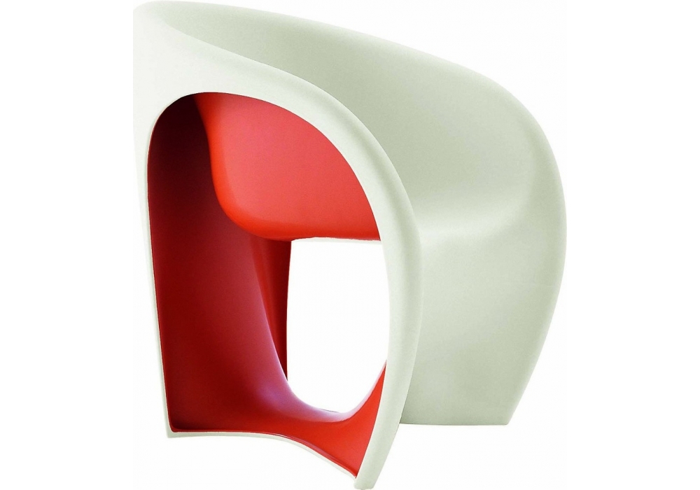 MT1 designed by Italo Rota for Driade is a monobloc armchair in sand white polyethylene (RAL 1013) on the outside and red or black on the inside. Indoor / outdoor use.