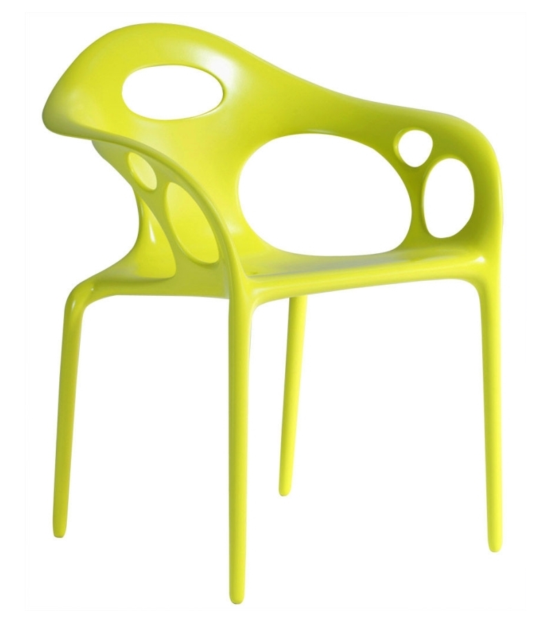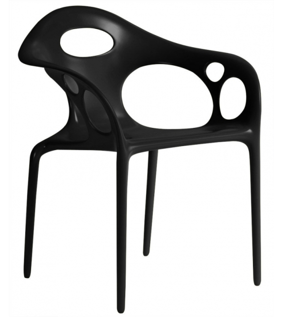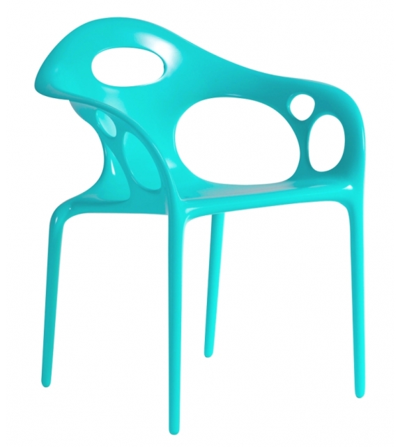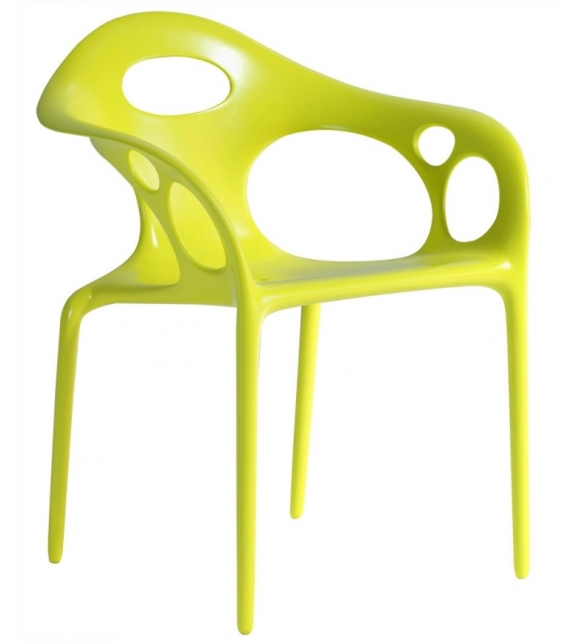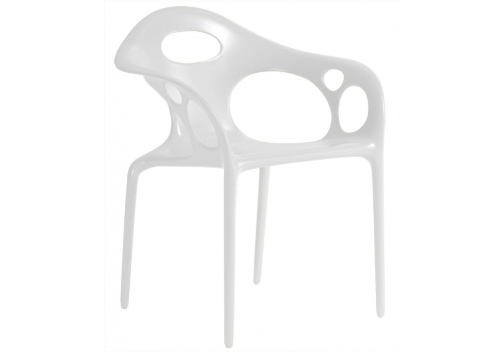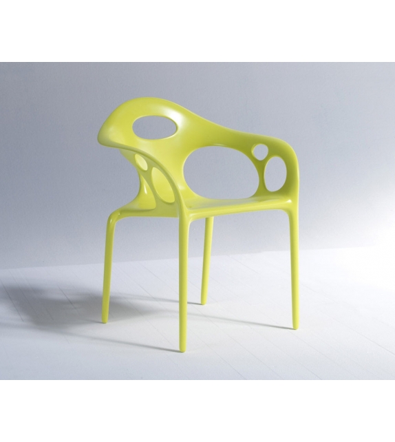 Supernatural designed by Ross Lovegrove for Moroso is a set of 4 monocoque small armchairs in reinforced polypropylene obtained from a gas injection mold. It is stackable up to 4 units.