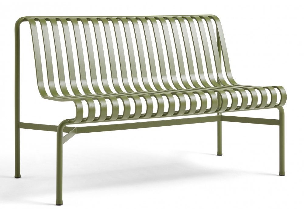 Palissade designed by Ronan & Erwan Bouroullec for Hay is an outdoor dining bench made of powder-coated or hot-dip galvanized steel. Available in different models and finishes.