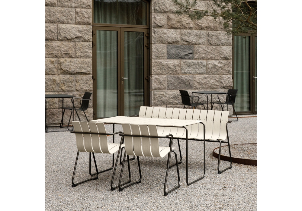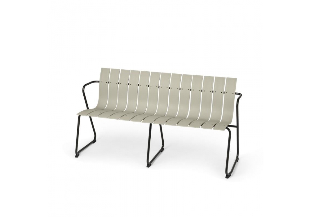 Ocean designed by Joergen and Nanna Ditzel for Mater is an outdoor bench from the Ocean collection. It is made with gunmetal finish steel tube frame and recycled plastics lamels shell.