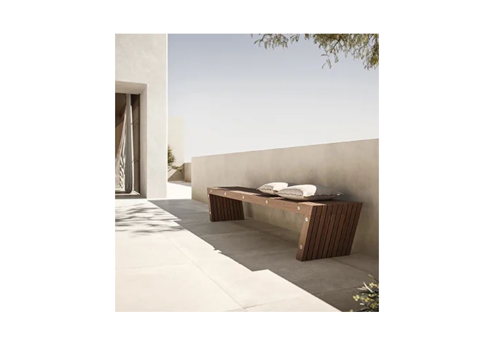XY designed and produced by Modulnova is a bench with structure made of heat-treated solid ash wood strips available in two finishes (Light and Dark), joined with threaded bars and the relative metalware in 316 stainless steel. makes it more solid and resistant to outdoor environments. Available in different sizes.