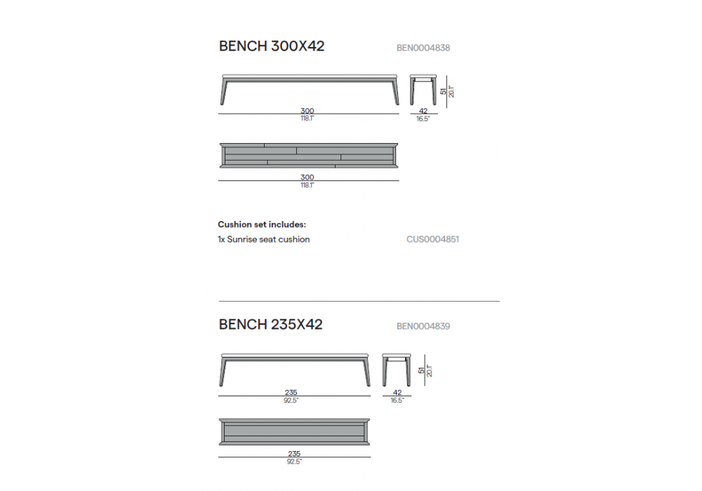 | Dimensions | - 300 x 42 x H 51 cm; - 235 x 42 x H 51 cm. |
