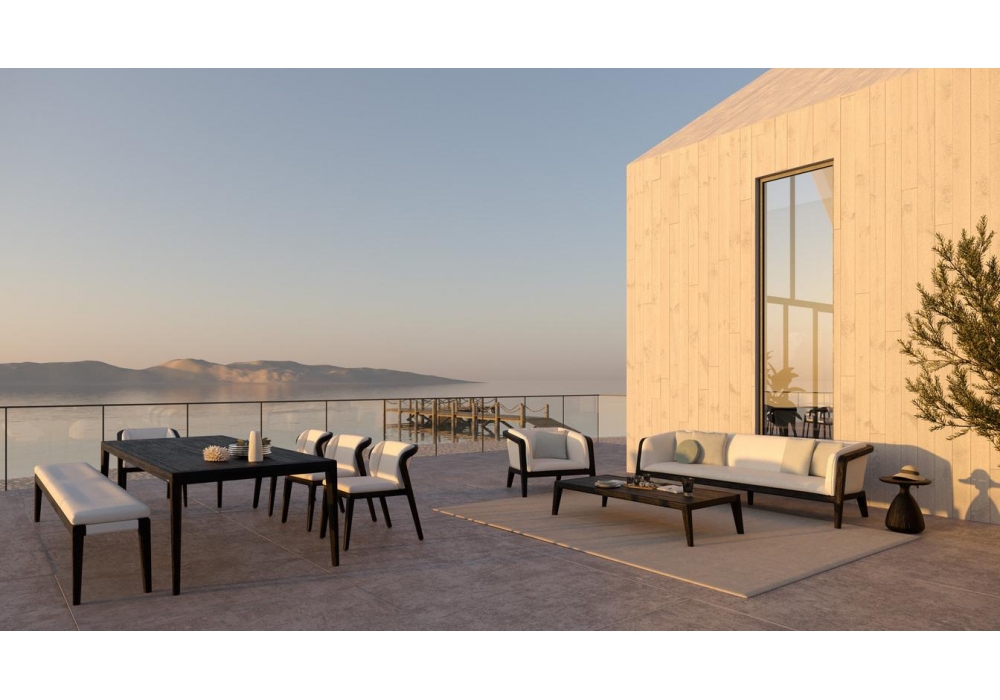 Sunrise designed by Matthew Townsend for Manutti is an outdoor bench with structure and top in teak. Available in different finishes and dimensions.