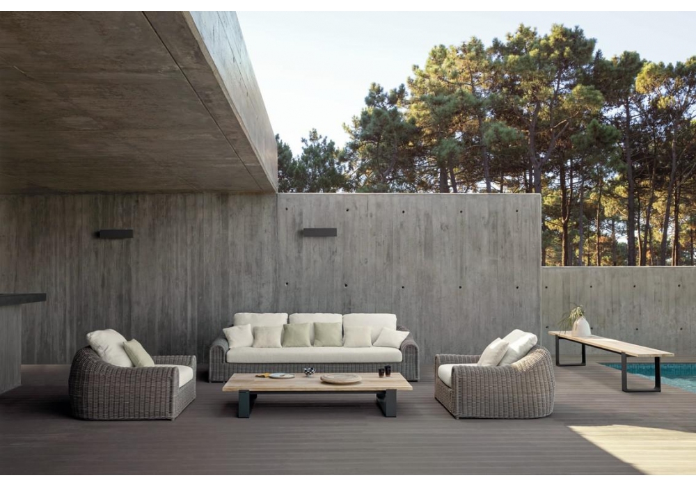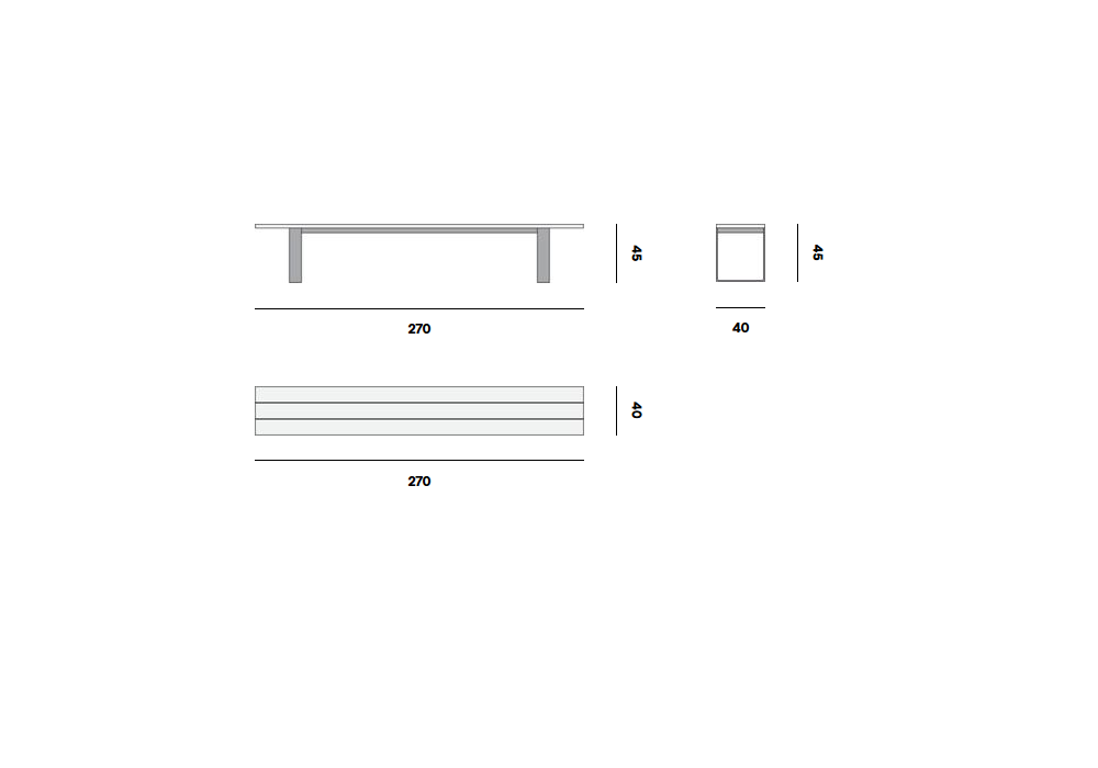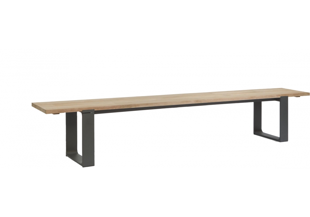 Prato by Manutti is a bench with iron structure in three finishes and seat in natural or dark teak.