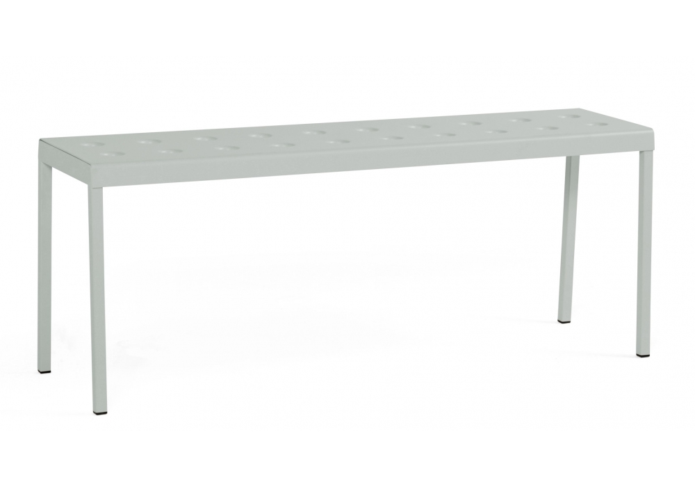 Balcony designed by Ronan & Erwan Bourrollec for Hay is an outdoor bench made of powder coated steel with two-component coating; an exterior primer and powder coat that provides a barrier to corrosive elements, making it suitable for exterior use. Available in different finishes. On request it is possible to add a seat cushion.