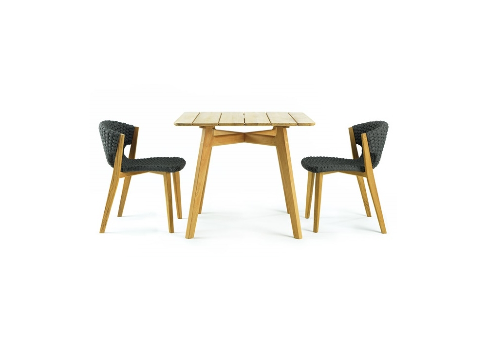 Knit designed by Patrick Norguet for Ethimo is a chair with structure in teak wood in different finishes and coverings.