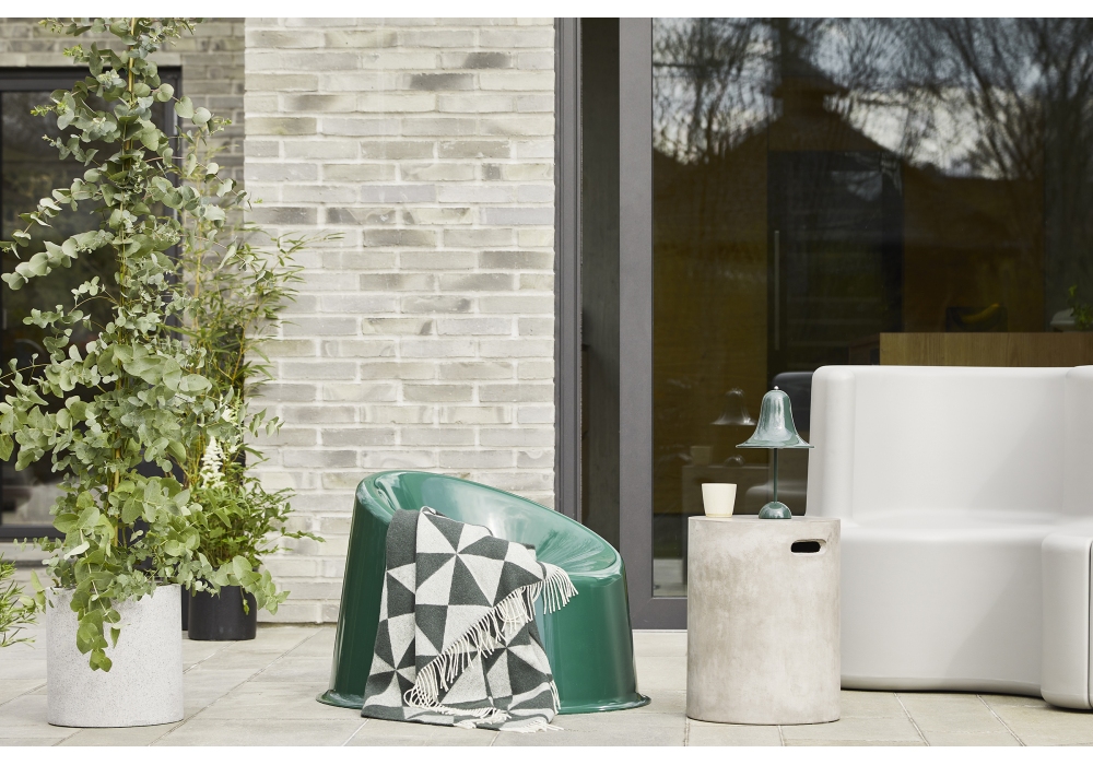 Panto Pop designed by Verner Panton for Verpan is a set of 4 stackable chairs made in 100% recycled PP. Suitable for indoor or outdoor use. Available in different finishes.
