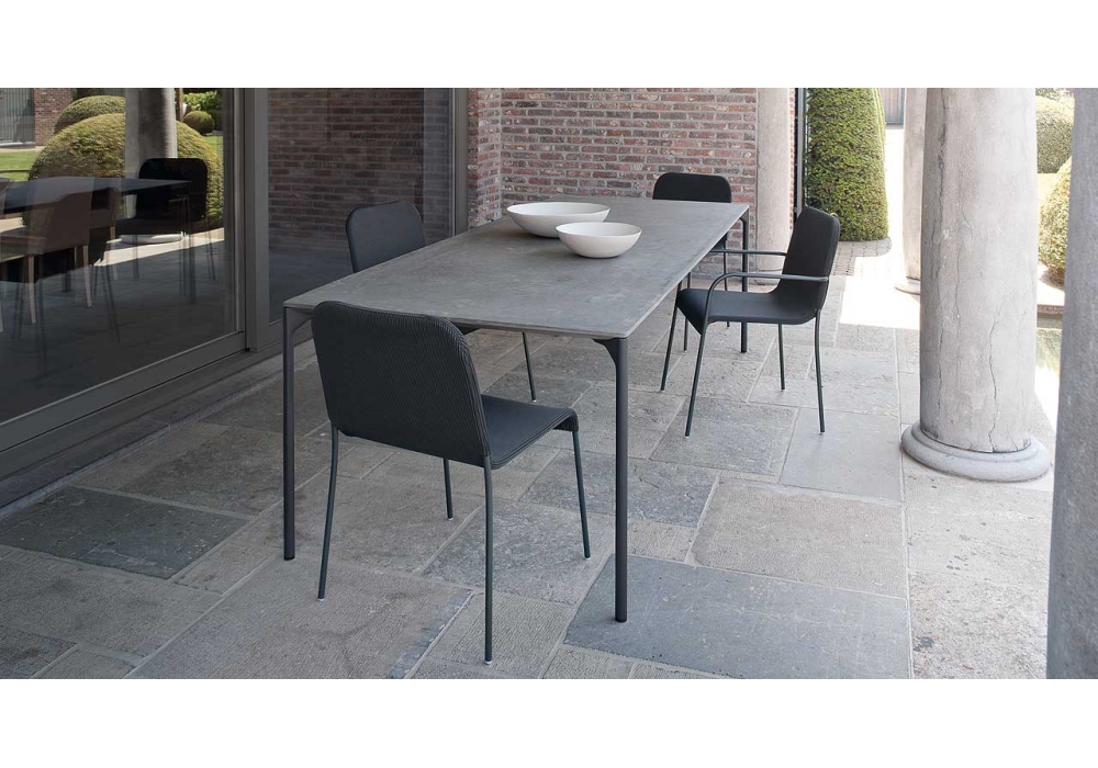 Mira designed by Francesco Rota for Paola Lenti is a stackable chair with structure in matt painted stainless steel in ivory or graphite, or polished in different colors. Upholstery available in Light, Rope T, Madras or Tamil fabrics. Also available in 2 different versions: with or without armrests.