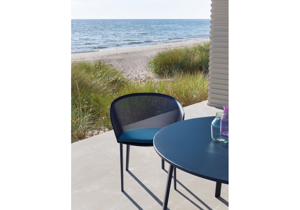 Stampa designed by Ronan & Erwan Bouroullec for Kettal is a dining chair with a structure entirely made of painted aluminum. The seat cushion is padded and covered in fabric. Stampa is available in different finishes.