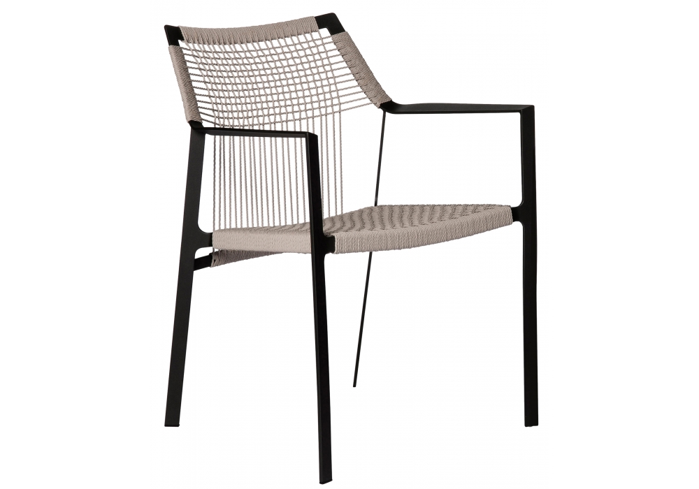 Nodi designed by Yabu Pushelberg for Tribù is a chair with armrests. Steel structure painted with white or wengé powder. Seat and back made of braided rope.