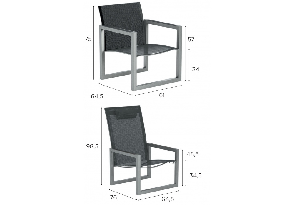 | Dimensions | 61 x 64,5 x H 75 cm; 64,5 x 76 x H 98,5 cm. |