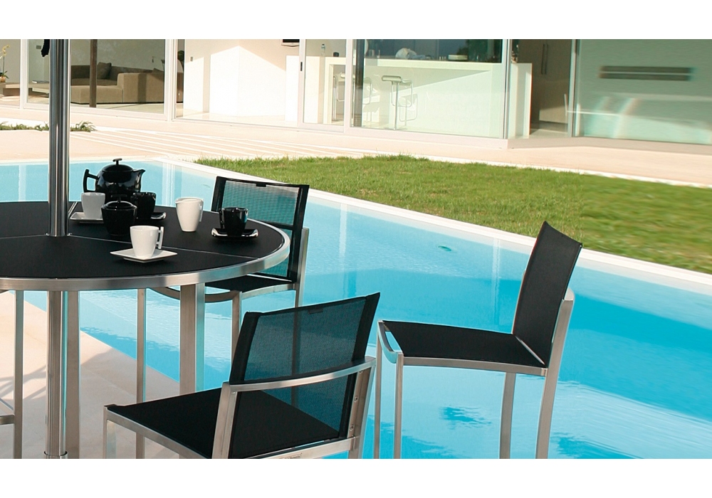 O-Zon designed by Kris Van Puyvelde for Royal Botania is a chair with a stainless steel or aluminum structure. Seat and back upholstery in Batyline®. Available in different finishes.